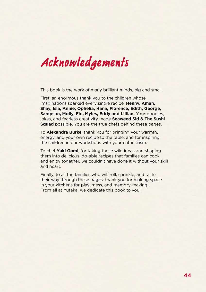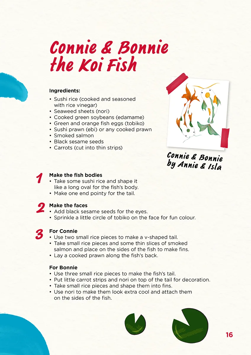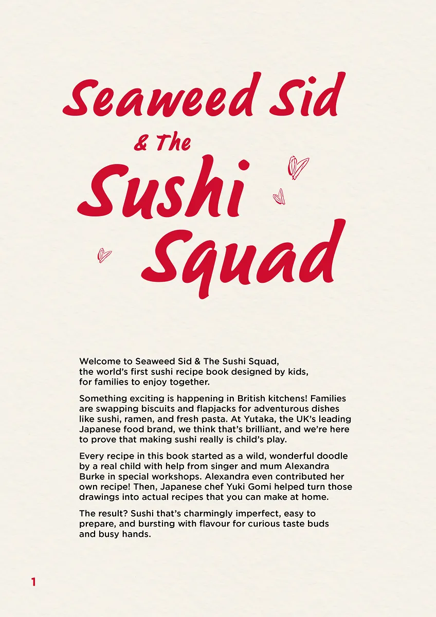 “Being a parent of two, I’m always looking for ways to maintain wonderfully nutritious meals while keeping kitchen time lots of fun. I love Japanese food, so it is a dream to work on this sushi book with all the talented young foodie artists and Yutaka. Sushi really is child’s play, it’s quick, healthy and interactive - all the ingredients for very happy children in my household!” - Alexandra Burke, singer and mum